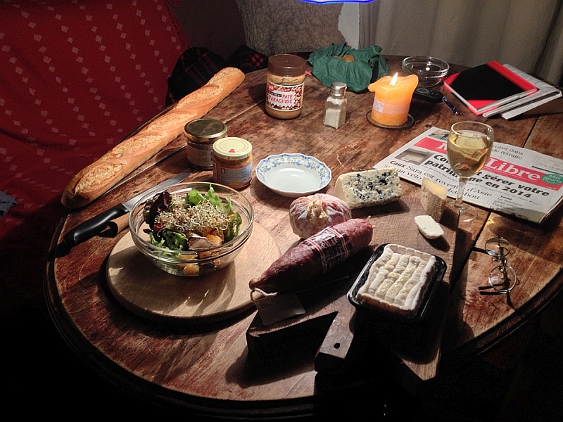 Der Alltag, wenn man ihn sich entsprechend eingerichtet hat, kann etwas Bezauberndes sein: zum Beispiel den Feldthymian, der hier überall wächst (und von dem ich nie weiß, ob es sich um Thymus serpyllum oder Thymus pulegioides handelt), zu trocknen und zu rebeln, um damit die Soßen zu würzen. (Für T. serpyllum spricht, dass man ihn hier serpolet nennt, für T. pulegioides die Beschreibung in den botanischen Lehrwerken und sein Vorkommen in den hiesigen südfranzösischen Breiten.) Oder aus altem Baguette Semmelnknödeln zu machen. |