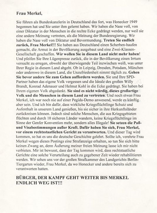 Flüchtlinge (3): Latrinenparolen eines Bürgers dieses "großartigen Volks". Im Bild ein Fundstück aus einer Autobahntoilette, heute an der A5, frisch und anonym an die Wand über der Schüssel geklebt. Wir sind das Volk? Wir sind vielleicht ein Volk! |