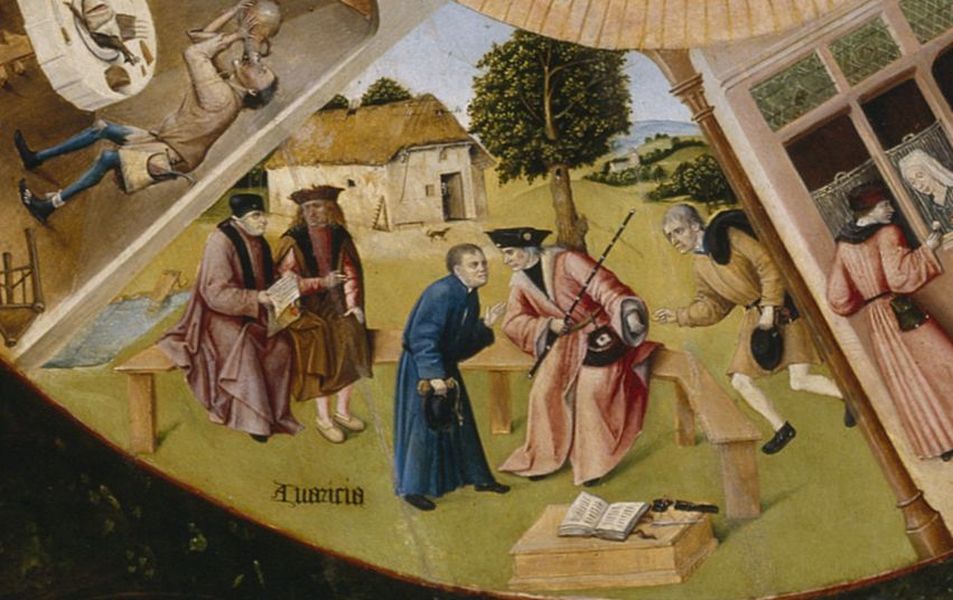 Das soll und kann kein Kommentarblog zu aktuellen Nachrichten sein, das machen schon genug andere. Aber gelegentlich reizen mich die Ereignisse, meinen Senf dazuzugeben. Aus den Nachrichten der vergangenen Woche greife ich zwei heraus, die mit einem der Grundübel der menschlichen Spezies zu tun haben, der Gier. Als Avaritia (Geiz, Habgier) kennt sie die Kirche seit jeher und zählt sie zu den Sieben Todsünden. Das will keiner mehr wissen.Nebenbei: es lohnt sich anzuschauen, wie Künstler diese Todsünden dargestellt haben. Rechts (oben) ein Ausschnitt aus dem Gemälde "Die Sieben Todsünden" (vor 1500, Hieronimus Bosch zugeschrieben). Der Ausschnitt zeigt die Habgier und zeigt einen Richter, der sich bestechen lässt. (Das ganze Bild ist hier |