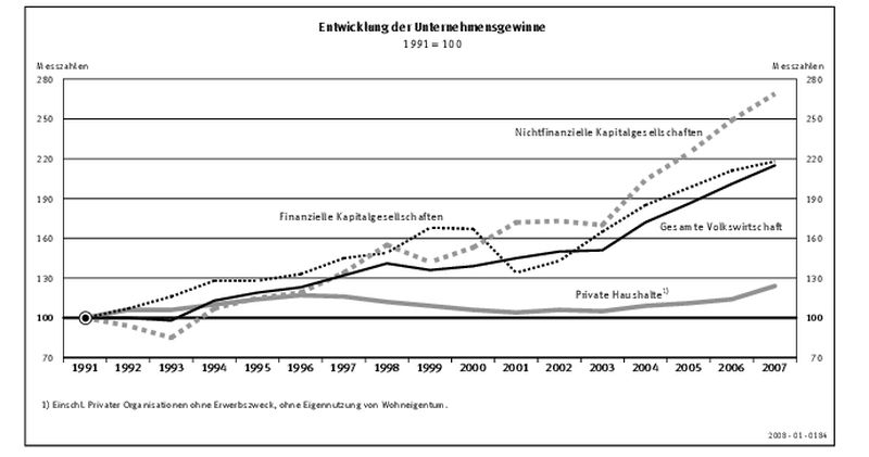 | Dass einer wie Trump das ändern würde (oder wollte), dieser Irrglaube ist das eigentlich Tragische an dieser Wahl. | Einkommens- und Gewinnentwicklung 1991 - 2007. Quelle: Statistisches Bundesamt. Leider fehlen die letzten zehn Jahre, die Entwicklung dürfte mindestens ebenso deutlich weitergegangen sein. | ||||||||||