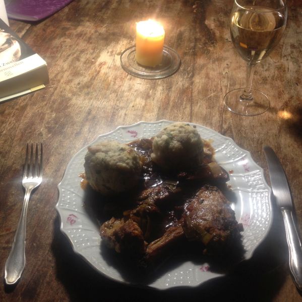 Es war am 8. September 1962 (das genaue Datum musste ich erst nachschlagen), als Charles de Gaulle im Zug seiner – man muss sagen: historischen – Deutschlandreise nach München kam. Ich war damals knapp 15 Jahre alt, ging in die 5. (heute 9.) Klasse Gymnasium, und unsere Lehrer gaben uns schulfrei, damit wir den Gast aus dem Land, das bis kurz vor meiner Geburt noch Kriegsgegner gewesen war, begrüßen konnten. Man hatte uns im Rahmen der wiederentdeckten Freundschaft zu den Nachbarn zu sechs Wochenstunden Französisch verdonnert, und das Fach musste ohne Abwahlmöglichkeit bis zum Abitur durchgezogen werden (wofür ich später dankbar war). Platz der Begegnung de Gaulles mit den Münchnern war die Feldherrnhalle, ein Ort, der in der deutschen Geschichte auch einmal eine höchst unrühmliche Rolle gespielt hatte ( Zwar ist gerade kein 9. September, ich habe mir aber dennoch erlaubt, heute ein weiteres Mal der französisch-bayérischen Freundschaft zu gedenken, indem ich mein Abendessen aus Spezialitäten beider Länder komponiert habe: |