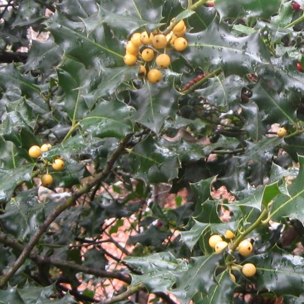 Die Stechpalme (Ilex aquifolia) ist, Spaziergänge in abgelegene, schwer zugängliche Wälder können manchmal botanische Erfahrungen erfreulich bereichern. Gestern zum Beispiel im hiesigen Gelände. Zwischen Steineichen, verwilderten Edelkastanien und allerlei sonstigem Gestrüpp fanden wir folgendes Exemplar: | ||||||||||
