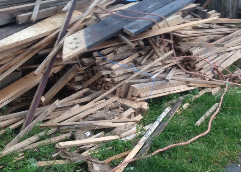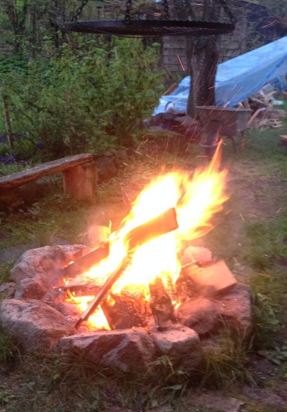 Unsere Großbaustelle hat uns eine Unmenge an Brennholz beschert: alte Balken, Deckenspaliere, Türzargen ... Nur wenig davon verfeuern wir in der Heizung, wir brauchen ja etwas fürs Osterfeuer. Und da hier seit über vierzig Jahren nur baubiologisches Material verwendet wird, gibt es auch kein Risiko für die Koteletts (von den eigenen Lämmern).