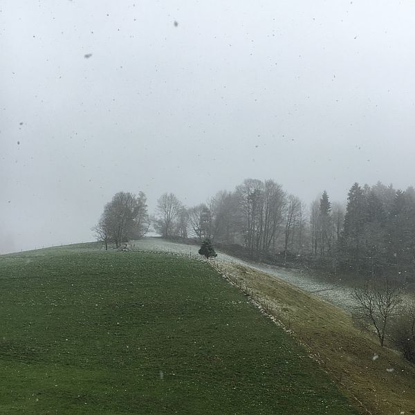 Nach dem Vorfrühling im Februar und dem Frühling im März nun also der Winter im April. Der Schnee übersteigt gerade die Höhe von zehn Zentimetern.
