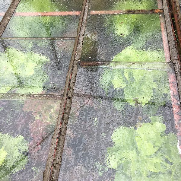 Neues von den Kratzbürstenbaustellen. Die Dachsanierung des Haupthauses (siehe 19.3.19) bringt es mit sich, dass für etliche Wochen ein Gerüst das Haus verziert. Und auf diesem Gerüst steht plötzlich eine Idee: die alten Bretter der Fassade auf der Hofseite brauchen doch dringend eine Erneuerung, und die prächtige Glyzinie einen Fassonschnitt. Also ran an die Fassade und rauf auf das Gerüst, solange es sowieso dasteht.