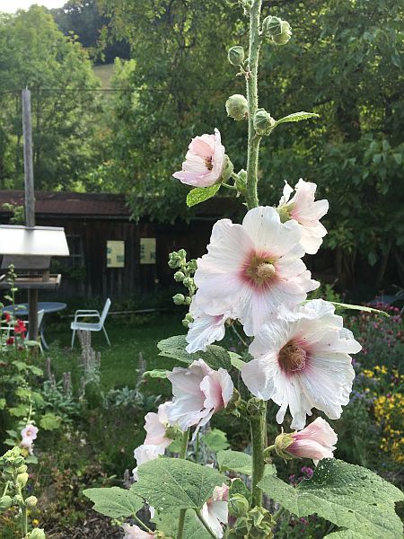 | Und das Ganze an einem komplett verregneten Sonntag. Ich aber hab meinen Trost: den Blick aus dem Fenster in den Garten mit den Sonnenblumen. Sie sind schon wieder ( |