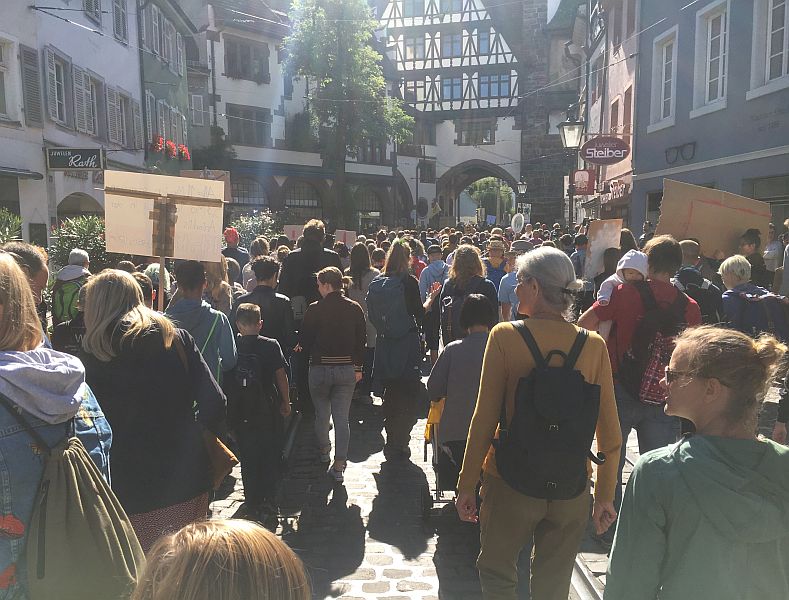 Fridays for future Während heute in Berlin das sogenannten Klimakabinett zu äußerst mageren Beschlüssen gekommen ist, sind überall auf der Welt Millionen von Menschen für mehr und effektivere Maßnahmen gegen die Erderwärmung auf die Straße gegangen. In Freiburg waren es laut dem Hier ein paar Fotos vom heutigen Tag: |